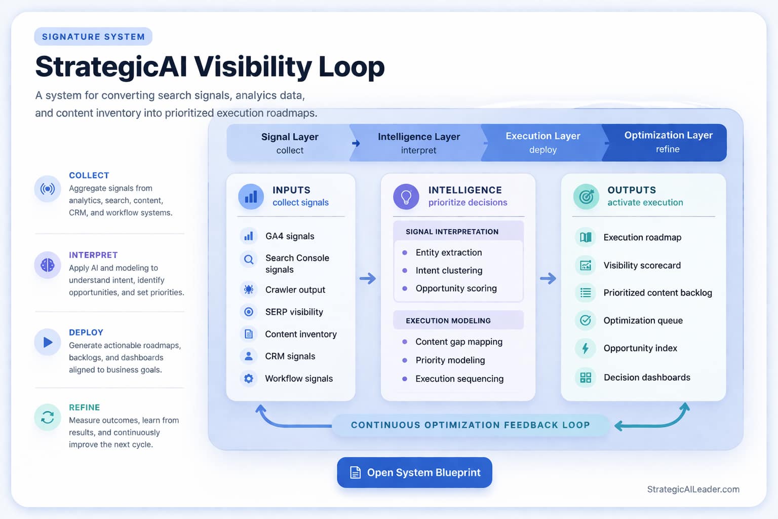 A signal interpretation system that converts search demand and analytics signals into prioritized pipeline opportunities and execution roadmaps.